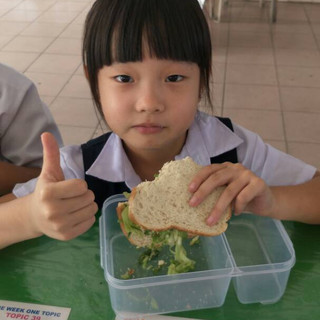 结束了健康饮食讲座,就到了孩子们非常期待的一起动手制作三文治的时间,营养师姐姐一步一步教导孩子把鸡蛋,番茄,洋葱,生菜,初榨纯椰油及美奶滋搅拌然后均匀的涂抹在全麦面包上,孩子们过后也跟着动手一起做,让孩子们实践一下,做做小厨师,回到家也可做个营养早餐给自己跟家人们分享,孩子们也能从中学会礼让及分享的精神。